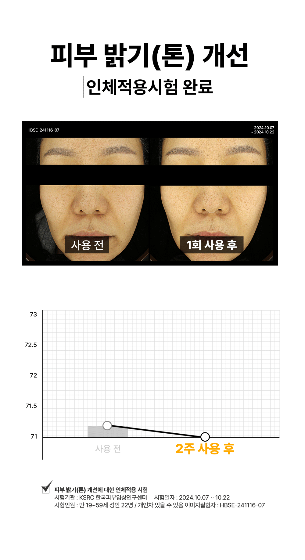 - Skin Tone (Brightness) Improvement: 102.70% (Clinical Result)